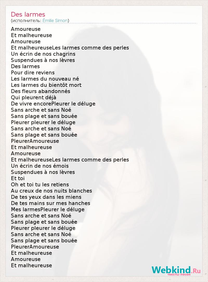 А как ты думаешь, о чем песня "Des larmes" ?
