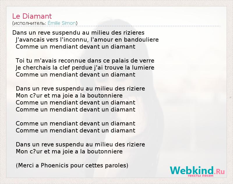 А как ты думаешь, о чем песня "Le Diamant" ?