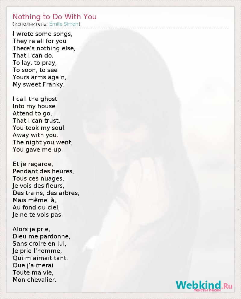 А как ты думаешь, о чем песня "Nothing to Do With You" ?