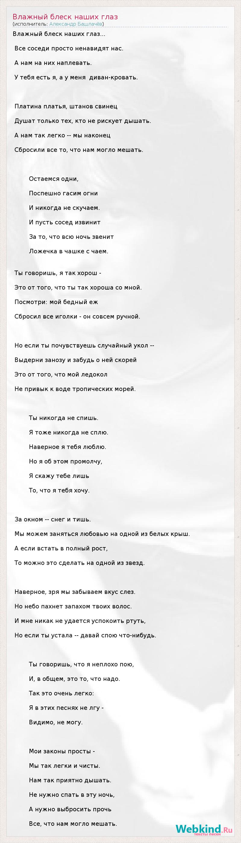 А как ты думаешь, о чем песня "Влажный блеск наших глаз" ?