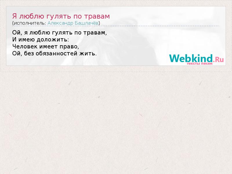 Ой, я люблю гулять по травам, И имею доложить: Человек имеет право, Ой, без обязанностей жить.