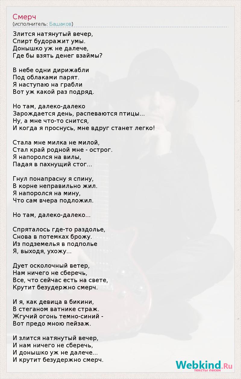 Злится натянутый вечер, Спирт будоражит умы. Донышко уж не далече, Где бы взять денег взаймы? В небе одни дирижабли Под облаками парят. Я наступаю на грабли Вот уж какой раз подряд. Но там, далеко-далеко Зарождается день, распеваются птицы... Ну, а мне что-то снится, И когда я проснусь, мне вдруг станет легко! Стала мне милка не милой, Стал край родной мне - острог. Я напоролся на вилы, Падая в пахнущий стог... Гнул понапрасну я спину, В корне неправильно жил. Я напоролся на мину, Что сам вчера подложил. Но там, далеко-далеко... Спряталось где-то раздолье, Снова в потемках брожу. Из подземелья в подполье Я, выходя, ухожу... Дует осколочный ветер, Нам ничего не сберечь, Все, что сейчас есть на свете, Крутит безудержно смерч. И я, как девица в бикини, В стеганом ватнике страж. Жгучий огонь темно-синий - Вот предо мною пейзаж. И злится натянутый вечер, И нам ничего не сберечь, И донышко уж не далече... И крутит безудержно смерч.