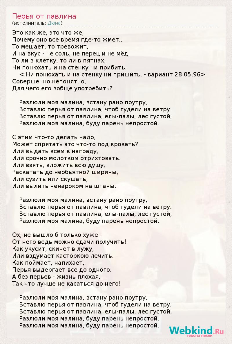 А как ты думаешь, о чем песня "Перья от павлина" ?