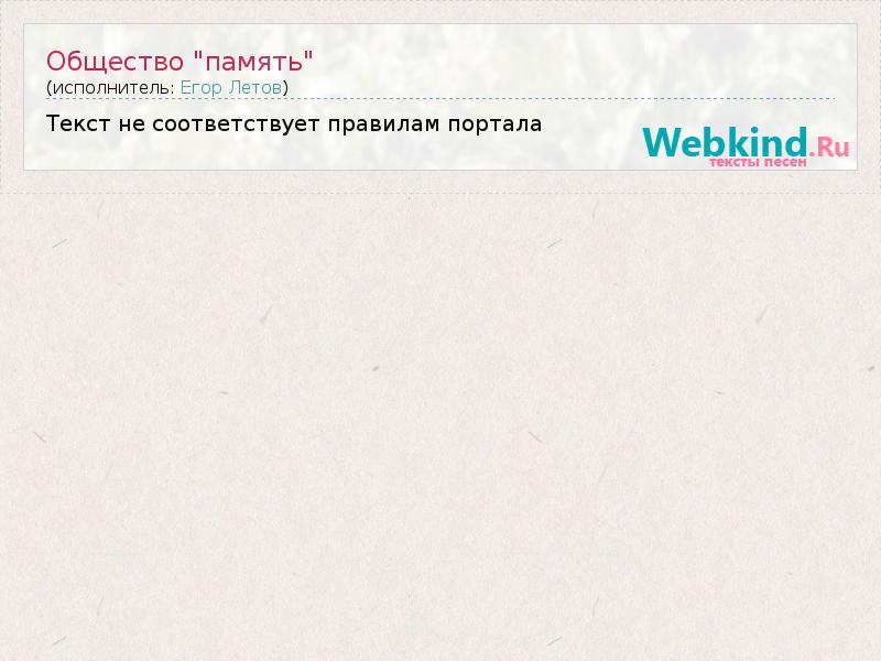 ГлавнаяИсполнителиЕгор ЛетовОбщество "память"