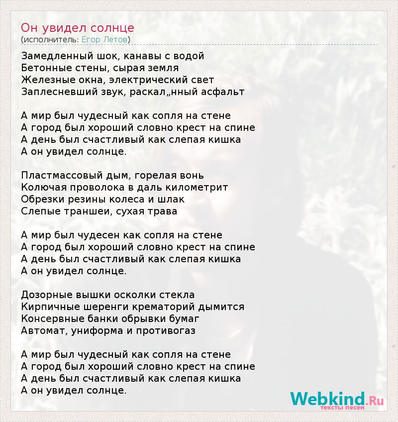 ГлавнаяИсполнителиЕгор ЛетовОн увидел солнце