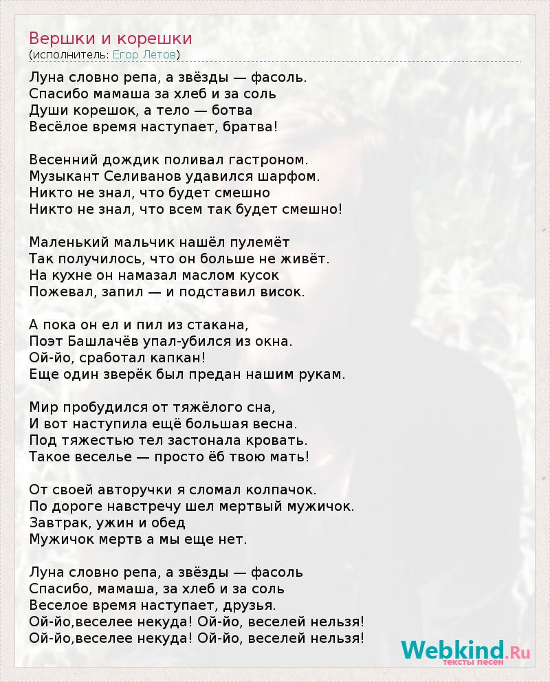 ГлавнаяИсполнителиЕгор ЛетовВершки и корешки