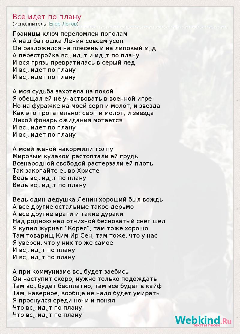 ГлавнаяИсполнителиЕгор ЛетовВсё идет по плану