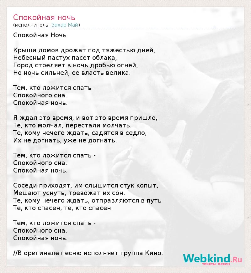 ГлавнаяИсполнителиЗахар МайСпокойная ночь