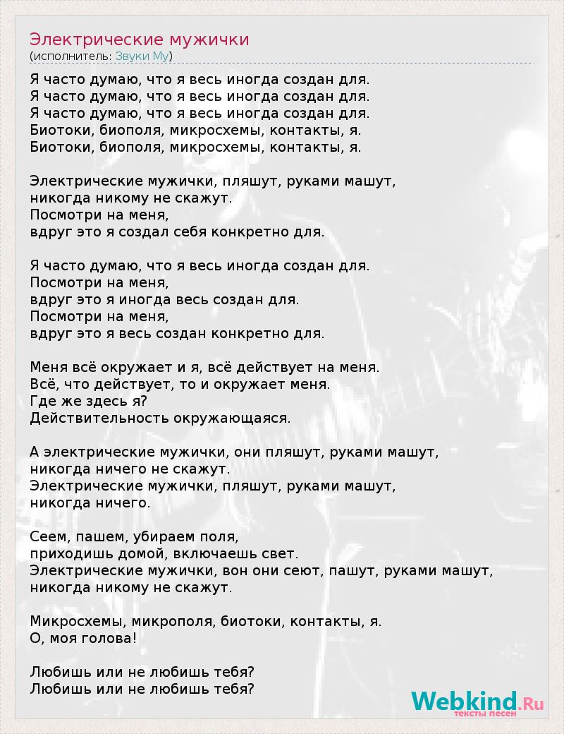 А как ты думаешь, о чем песня "Электрические мужички" ?