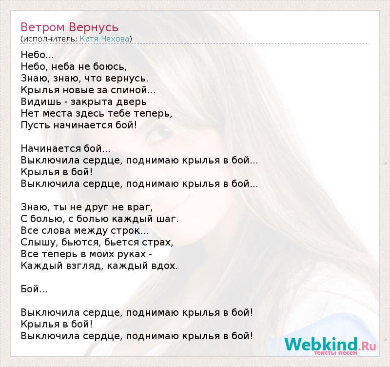 А как ты думаешь, о чем песня "Ветром Вернусь" ?