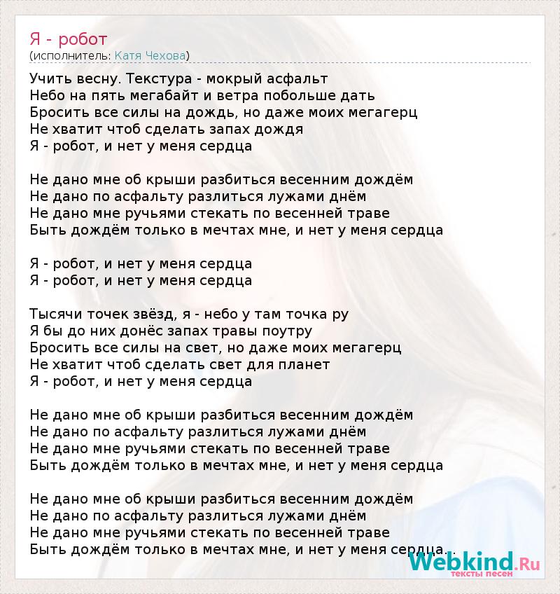 Это интересно:Рождение проекта «Катя Чехова» состоялось в 2005 году. В июне 2005 года проект стартовал ротацией треков «Я-робот» и «Крылья» в эфирах российских радиостанций.В декабре 2005 года вышел первый альбом Кати Чеховой «Я-робот», легальные продажи которого составили 250 000 CD-копий. Треки альбома на 1 год прочно заняли свои места в плейлистах клубных диджеев Москвы и России. За этот альбом проект... продолжение