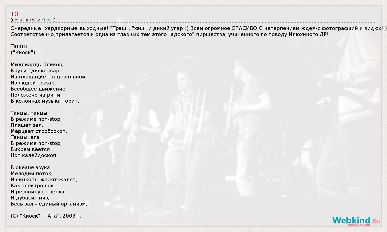 Это интересно:Зеленоградская ska/brass-pop/disco группа, образованная в 2003 году. В музыке больше ска чем панка, весёлые композиции и беззаботные тексты.Интервью на студии, где писался первый альбом "Не без чудес": http://www.radicalscope.ru/index.php?do=static&page=interviewkioskИнтервью по случаю авторской раздачи на torrents.ru - http://torrents.ru/forum/viewtopic.php?t=1325571ссылка... продолжение