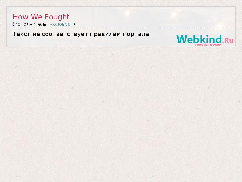 А как ты думаешь, о чем песня "How We Fought" ?