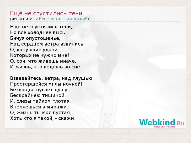 А как ты думаешь, о чем песня "Ещё не сгустились тени" ?
