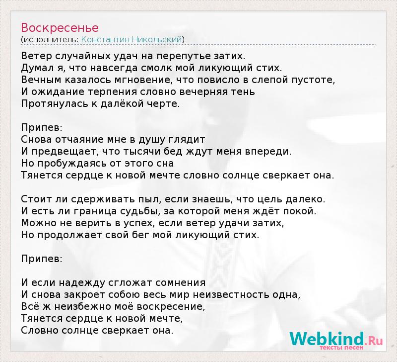 А как ты думаешь, о чем песня "Воскресенье" ?