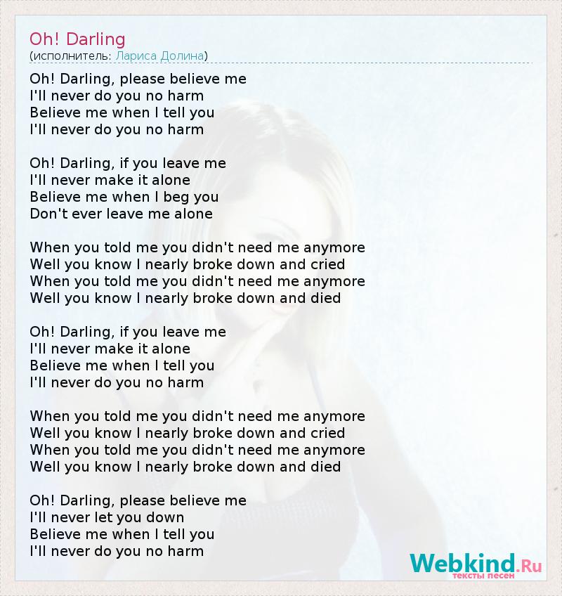А как ты думаешь, о чем песня "Oh! Darling" ?