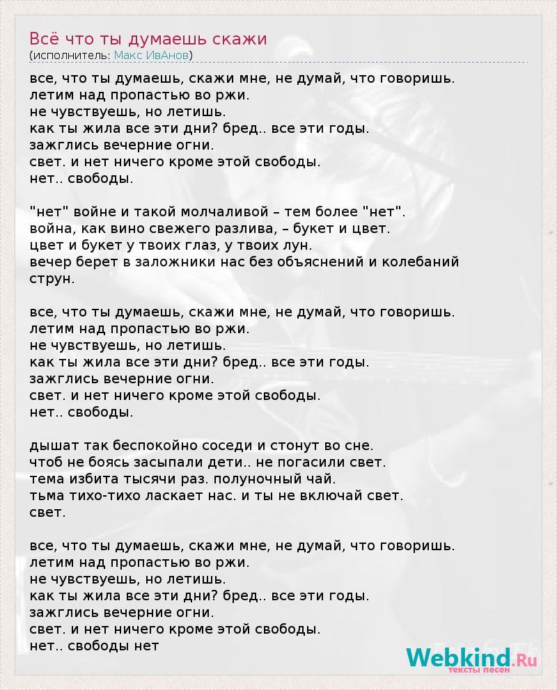 А как ты думаешь, о чем песня "Всё что ты думаешь скажи" ?