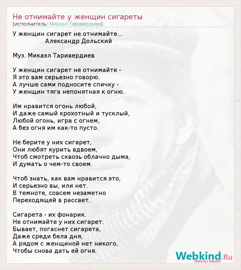 А как ты думаешь, о чем песня "Не отнимайте у женщин сигареты" ?