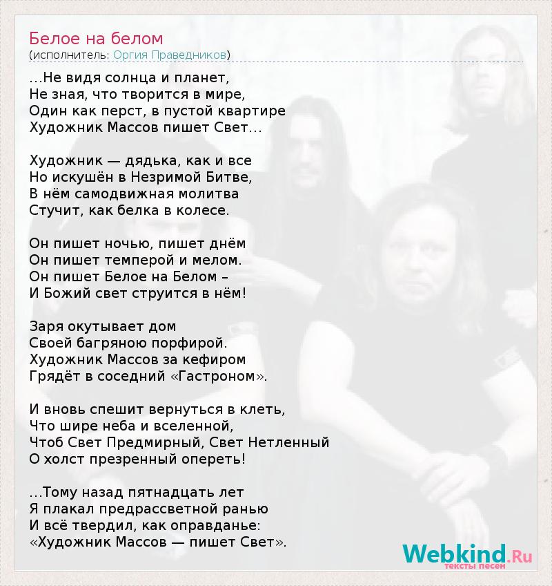 А как ты думаешь, о чем песня "Белое на белом" ?