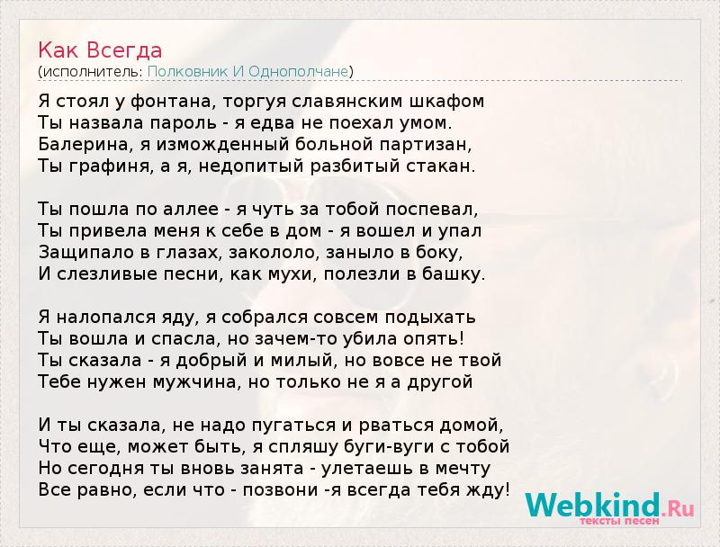 А как ты думаешь, о чем песня "Как Всегда" ?