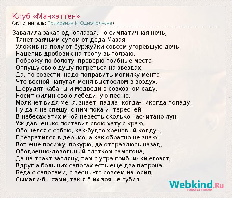 А как ты думаешь, о чем песня "Клуб «Манхэттен»" ?