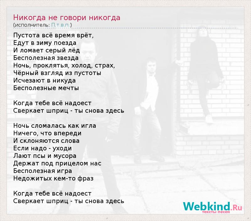 ГлавнаяИсполнителиП.т.в.п.Никогда не говори никогда