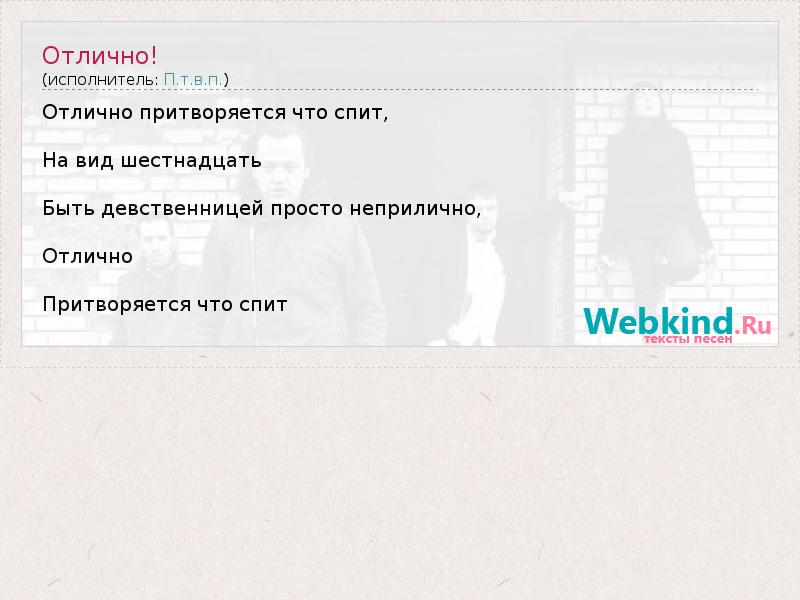 Это интересно:После́дние Та́нки В Пари́же (П. Т. В. П.) — панк-группа из Выборга, Ленинградская область, Россия. Коллектив был основан в 1996 году Алексеем Никоновым, чаще упоминаемым как Лёха Никонов.Первоначально группа была названа «Последнее танго в Париже» по одноимённому фильму (режиссёр: Бернардо Бертолуччи), позже Эдуард «Рэдт» Старков, записывая группу на выступление в клубе «TaMtAm», предложил... продолжение