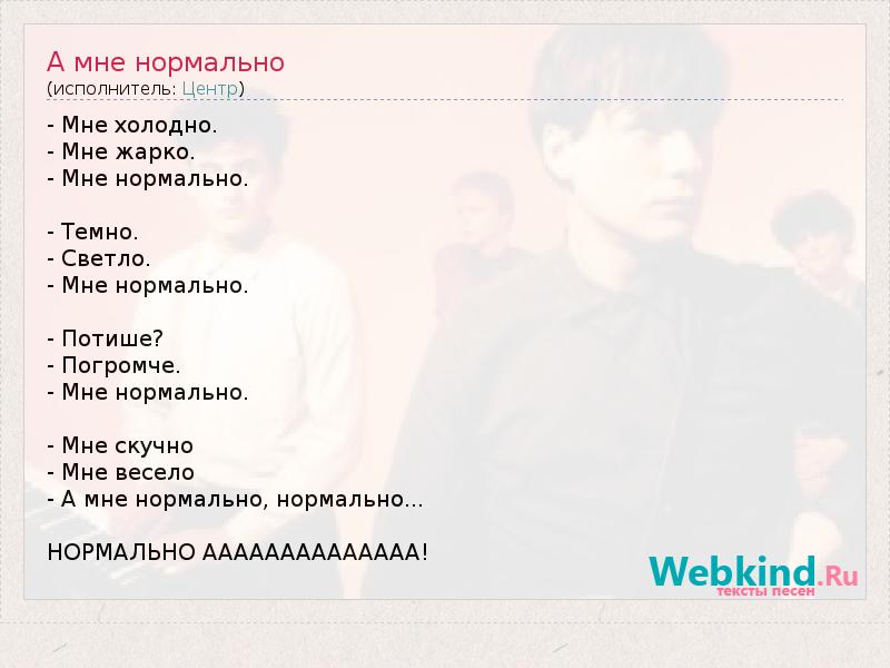 А как ты думаешь, о чем песня "А мне нормально" ?