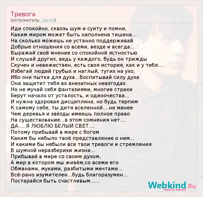 Иди спокойно, сквозь шум и суиту и помни, Каким миром может быть наполнена тишена... На сколько можешь не устанно поддерживай Добрые отношения со всеми, везде и всегда... Выражай своё мнение со спокойной ястностью И слушай других, ведь у каждого, будь он трижды Скучен и невежествен, есть своя история, как и у тебя.... Избегай людей грубых и наглый, тугих на ухо, Ибо они пытка для духа...Воспитывай силу духа Она защитит тебя во внезапных невзгодах. Но не мучай себя фантазиями, многие страхи Берут начало от усталость, и одиночества... И нужна здоровая дисциплина, но будь терпим К самому себе, ты дитя вселенной....не менее Чем деревья и звёзды имеешь полное право На существование...в этом сомнения нет.... ДА.....Я ЛЮБЛЮ БЕЛЫЙ СВЕТ.... Потому прибывай в мире с богом Каким бы небыло твоё представление о нем... И какими бы небыли все твои тревоги и стремления В шумной неразберихи жизни... Прибывай в мире со своим духом, А мир в котором мы живём,со всеми его Обманами, муками, разбитыми мечтами... Всё-рано изумителен...будь благоразумен... Постарайся быть счастливым......