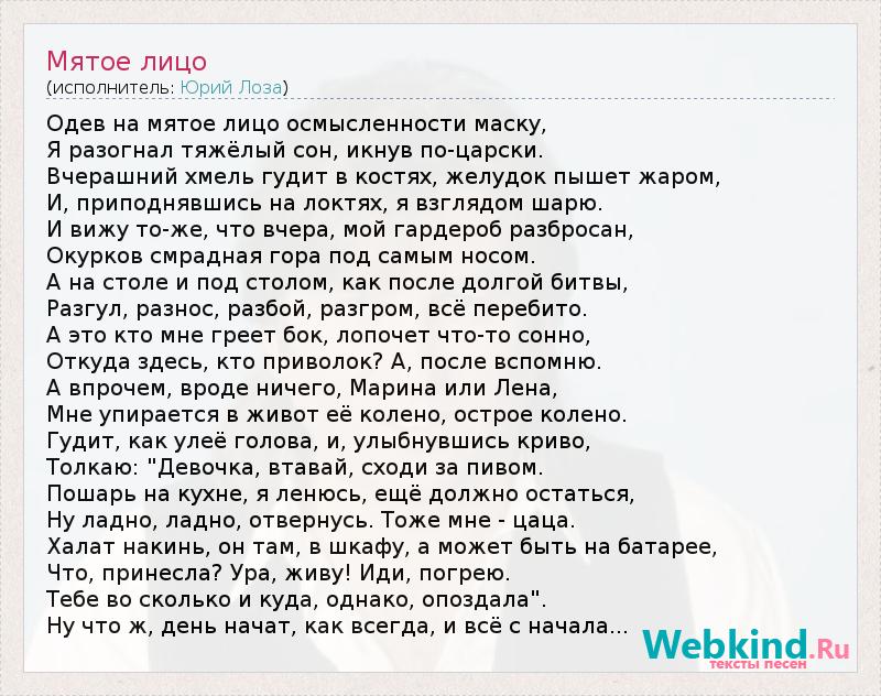 А как ты думаешь, о чем песня "Мятое лицо" ?