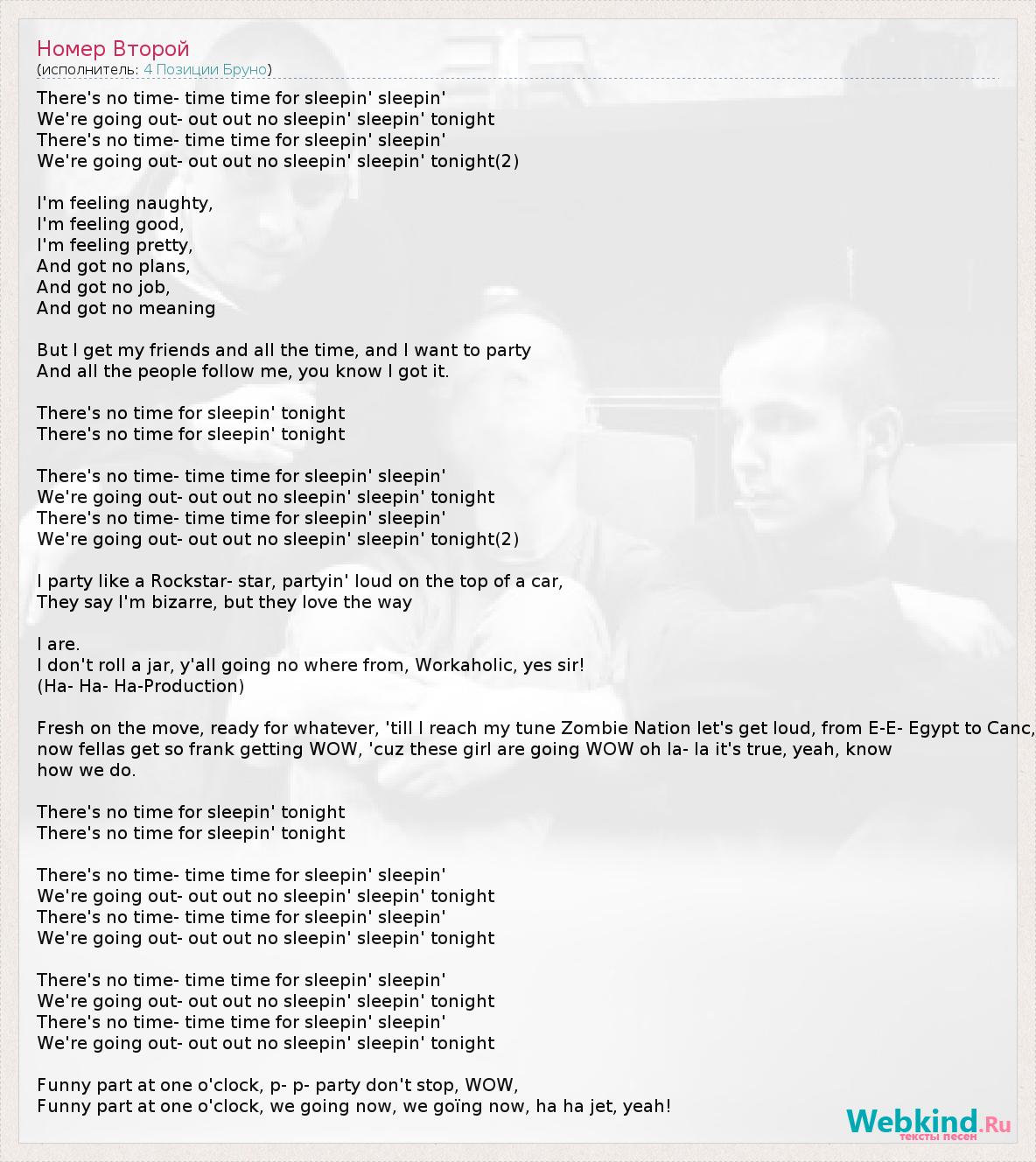 We're going out- out out no sleepin' sleepin' tonight(2)