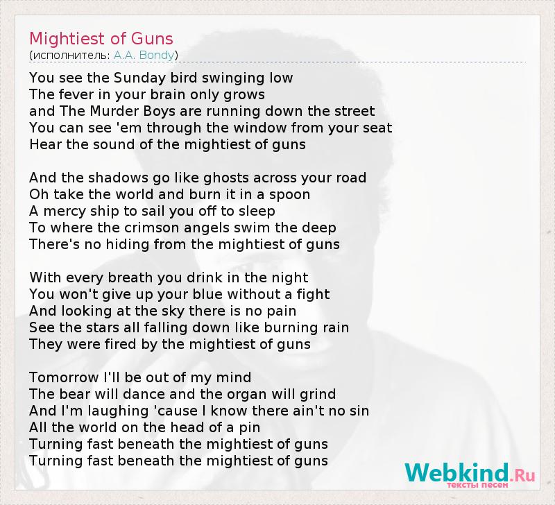 А как ты думаешь, о чем песня "Mightiest of Guns" ?