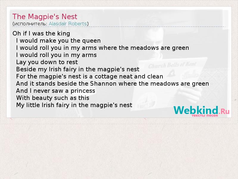 А как ты думаешь, о чем песня "The Magpie's Nest" ?