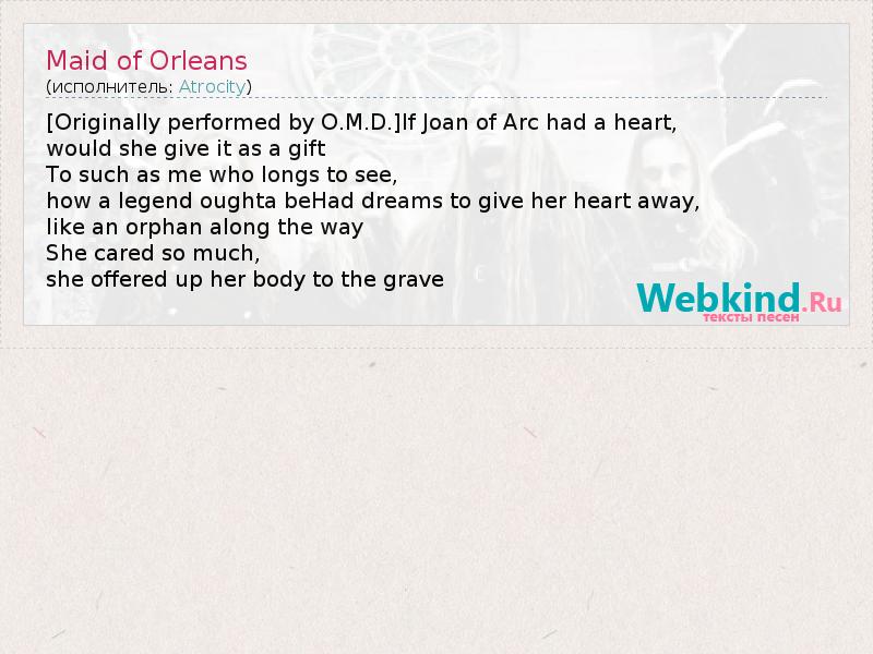 А как ты думаешь, о чем песня "Maid of Orleans" ?