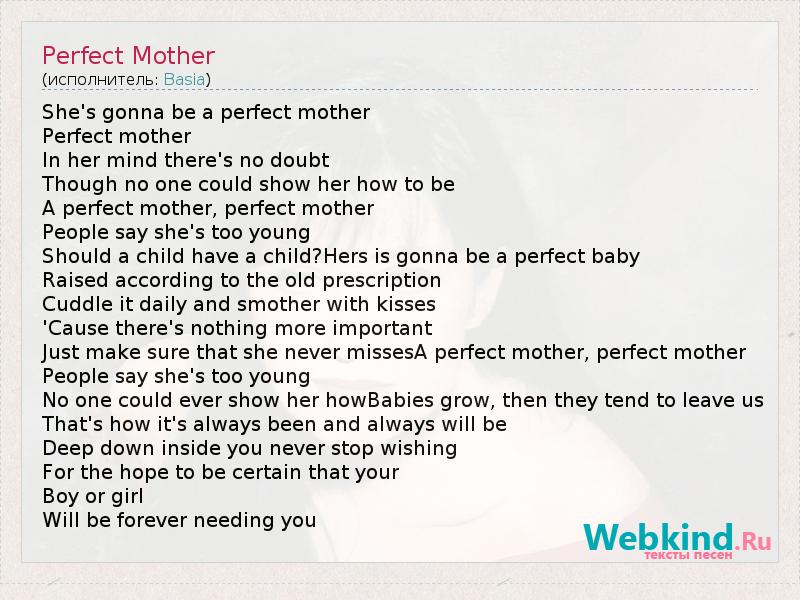 А как ты думаешь, о чем песня "Perfect Mother" ?