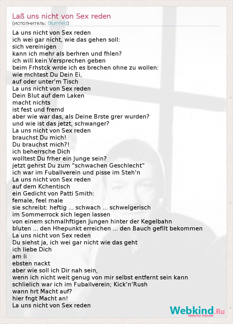 А как ты думаешь, о чем песня "Laß uns nicht von Sex reden" ?