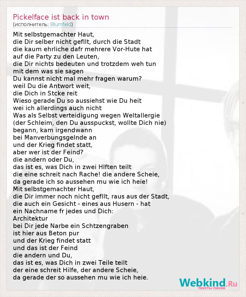 А как ты думаешь, о чем песня "Pickelface ist back in town" ?