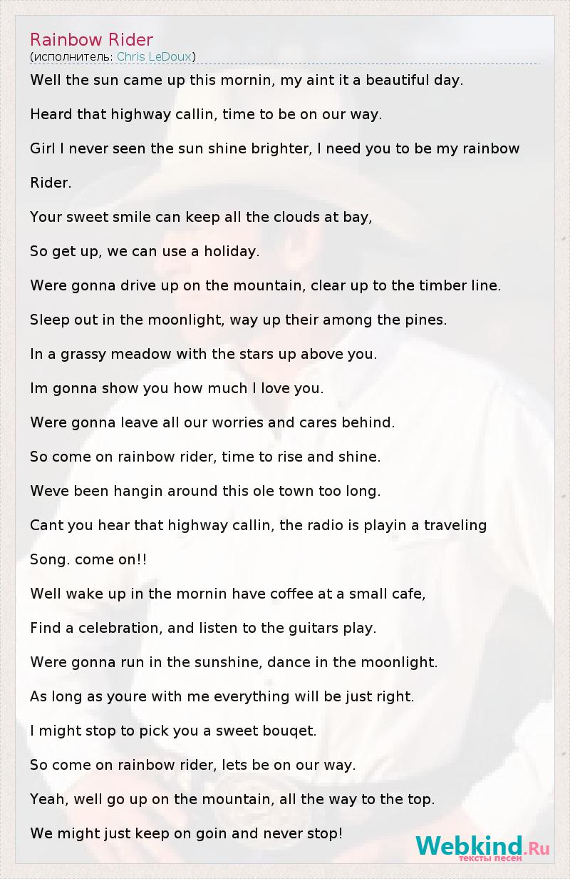 А как ты думаешь, о чем песня "Rainbow Rider" ?