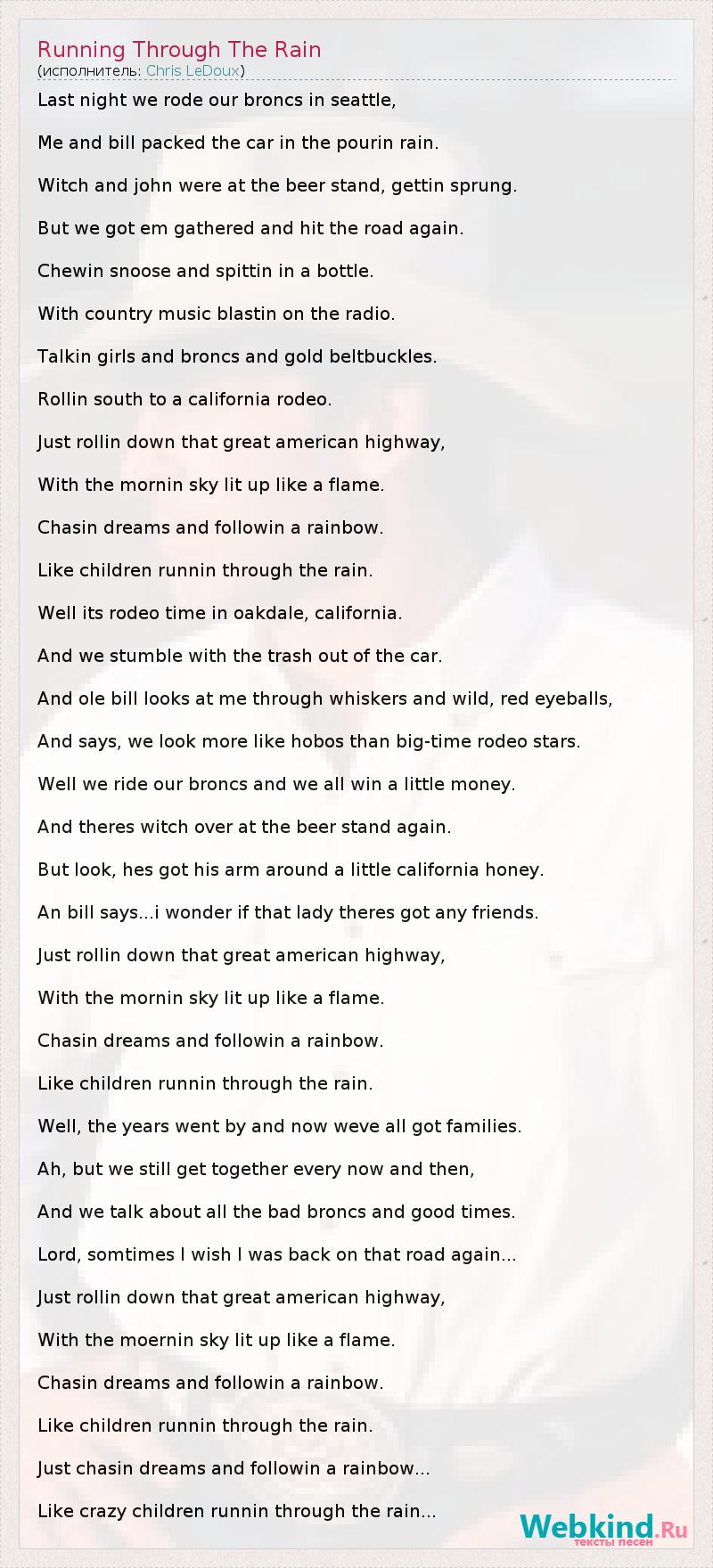 А как ты думаешь, о чем песня "Running Through The Rain" ?