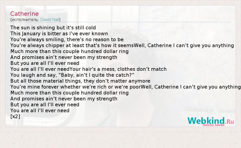You're mine forever whether we're rich or we're poorWell, Catherine I can't give you anything