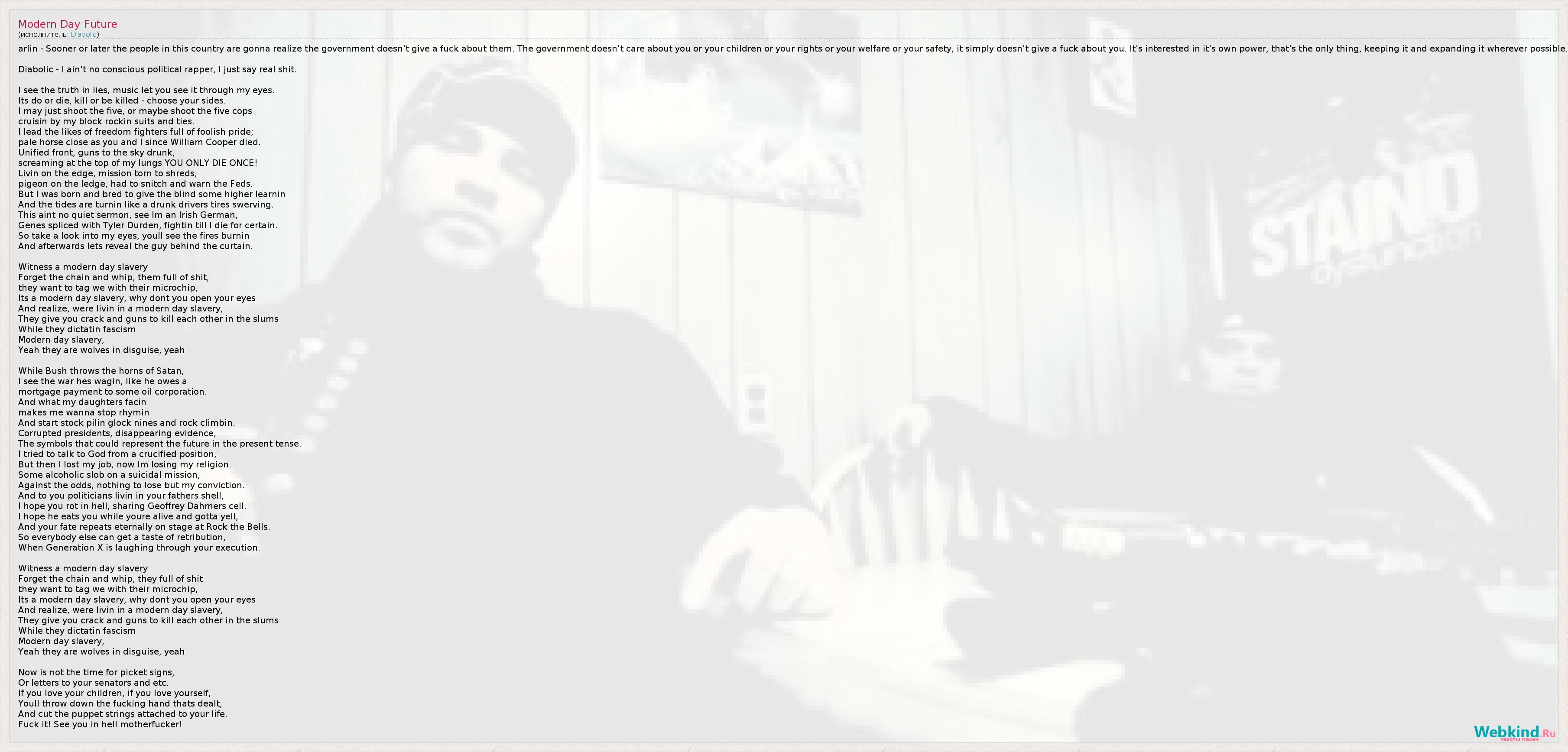 А как ты думаешь, о чем песня "Modern Day Future" ?