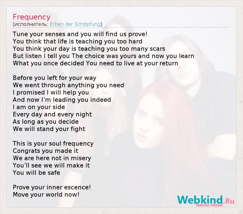 Tune your senses and you will find us prove! You think that life is teaching you too hard You think your day is teaching you too many scars But listen I tell you The choice was yours and now you learn What you once decided You need to live at your return Before you left for your way We went through anything you need I promised I will help you And now I’m leading you indeed I am on your side Every day and every night As long as you decide We will stand your fight This is your soul frequency Congrats you made it We are here not in misery You’ll see we will make it You will be safe Prove your inner escence! Move your world now!