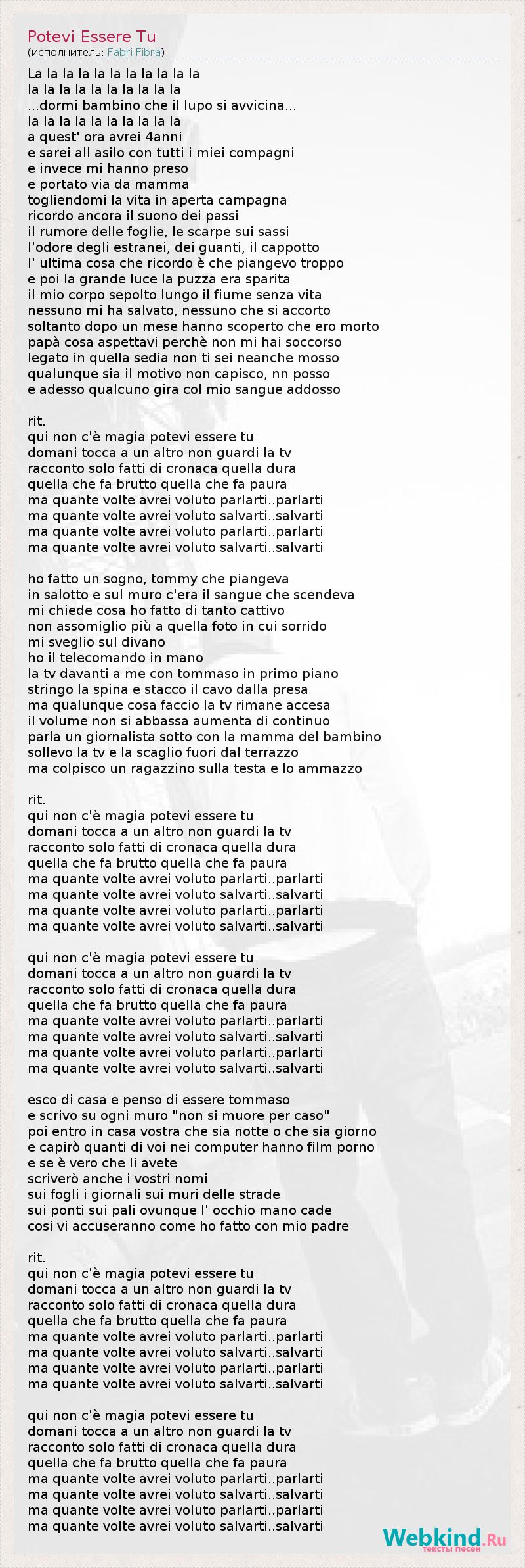 А как ты думаешь, о чем песня "Potevi Essere Tu" ?