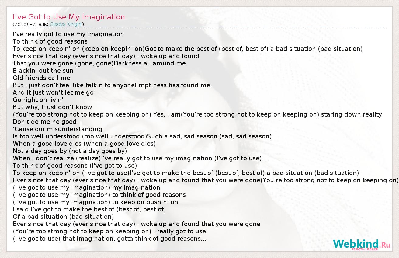 А как ты думаешь, о чем песня "I've Got to Use My Imagination" ?