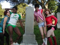We wore the little pleated skirts and hiked them up to show our goods Nuns beat hoes up with rulers as in line for cigarettes we stood In sweater vests we learned to stay chaste and 'bout 'macculate conception While at recess we read Hustler, compared means of contra. [CHORUS] More, more! After kneelin' on the church floor Sore, sore! After kickin' down the choir door Tore, tore! Up the holy fucking sacrament Whore, whore! Gravy Train's the living testament Priests wanted to buy Funky cars but she said HELL NO Nuns asked to cruise around in bars, Drunky said HELL NO Altar boys followed Hunky 'round but he said HELL NO The pope tried buying me a town but I said HELL NO [CHORUS (x2)] Lemme see those titties bounce! [x8]