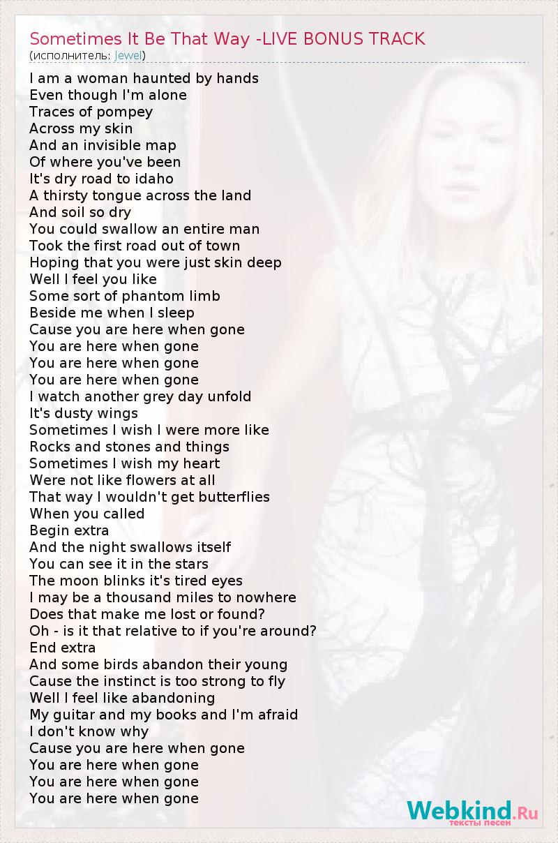 А как ты думаешь, о чем песня "Sometimes It Be That Way -LIVE BONUS TRACK" ?