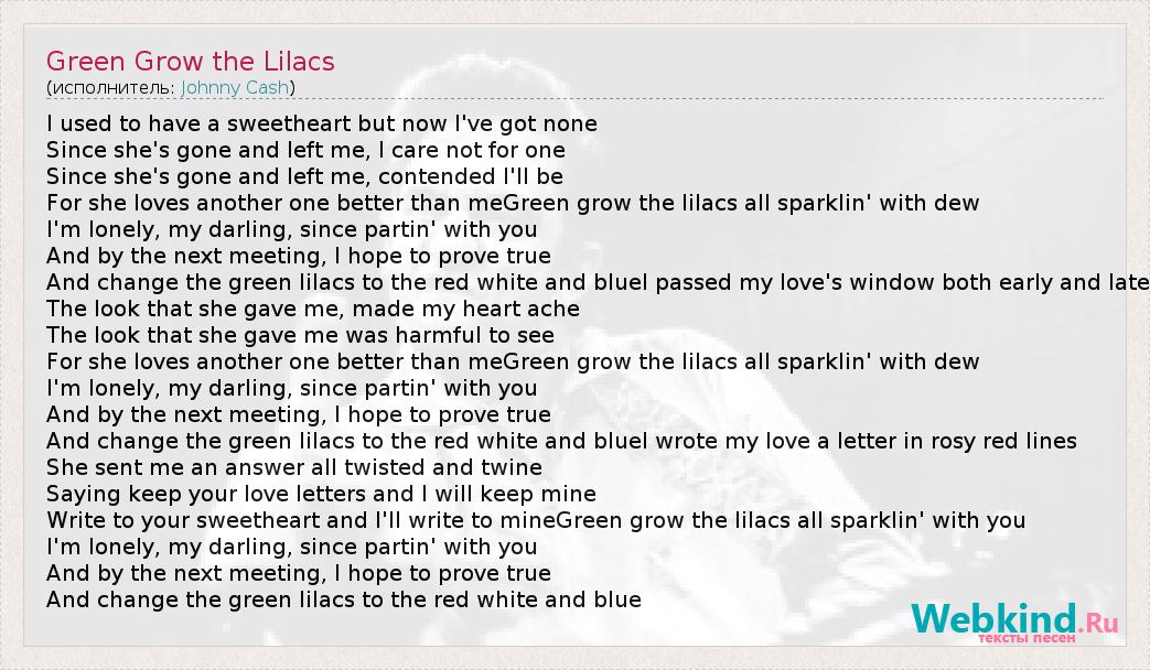 А как ты думаешь, о чем песня "Green Grow the Lilacs" ?