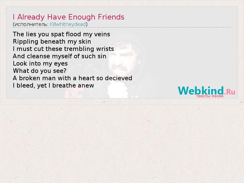 ГлавнаяИсполнителиKillwhitneydeadI Already Have Enough Friends