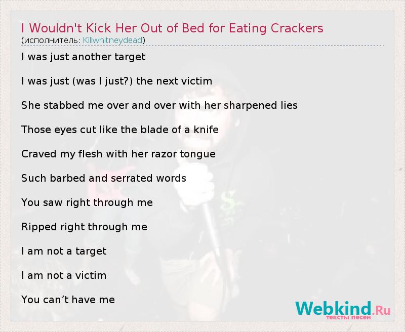 ГлавнаяИсполнителиKillwhitneydeadI Wouldn't Kick Her Out of Bed for Eating Crackers