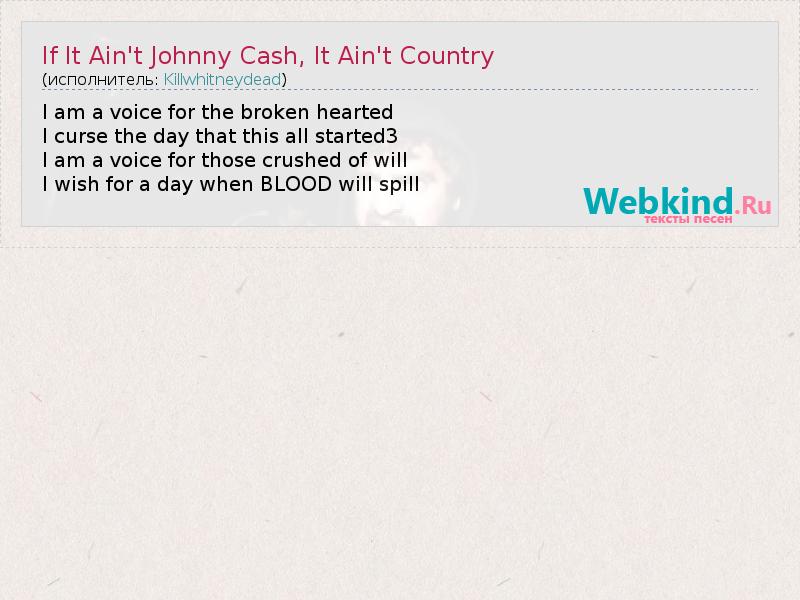 ГлавнаяИсполнителиKillwhitneydeadIf It Ain't Johnny Cash, It Ain't Country